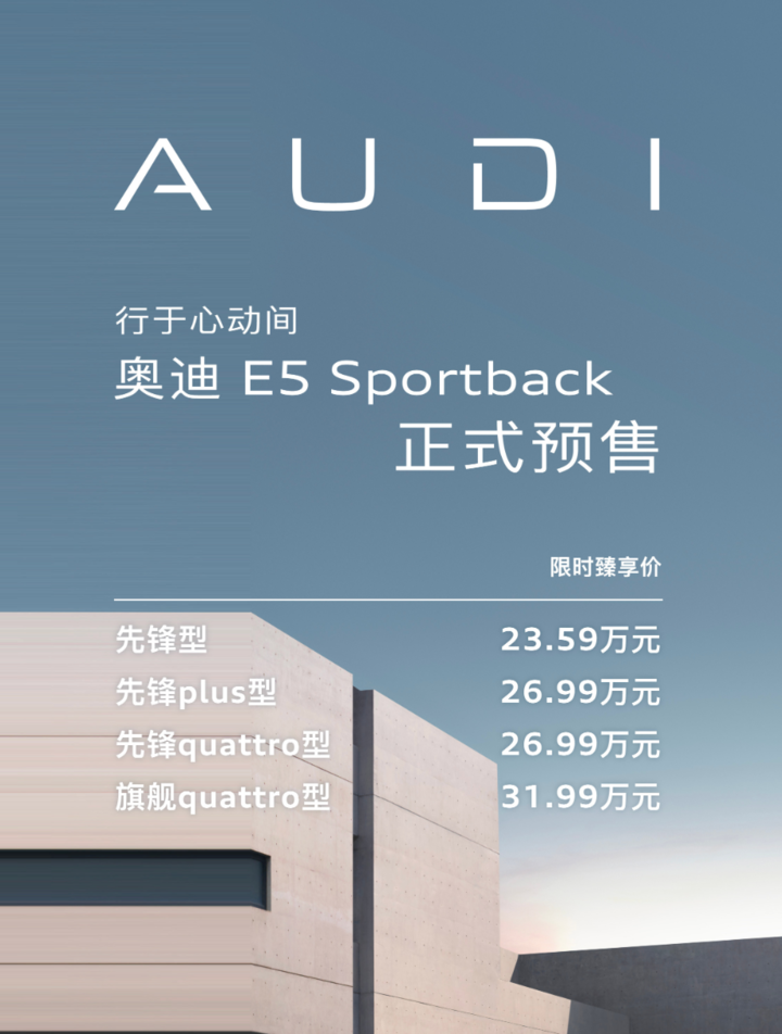 没错,在这台字母地点 AUDI 新车身上,我既顺服奥迪当作百年车企依旧有破釜千里舟的决心和勇气,但却也合计 E5 Sportback 这辆车大约率在中国市集合过的很沉重。
