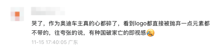 这是客岁 11 月奥迪新豪华电动品牌 AUDI 和 AUDI E 观念车发布时,一位奥迪粉丝的留言。